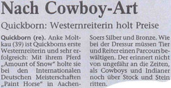 Dt. Vizemeister Open Amateur Trail PHCG 3. Platz Reining Futurity PHCG ROMs Open und Amateur Trail
